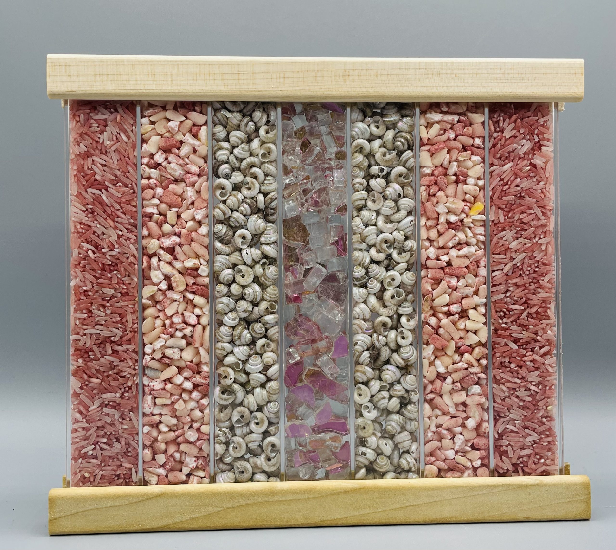 A delightful variety of pink and white combinations?. looks great in a black and white kitchen. The wood rails are in light maple wood. Below are examples of our pink plates. We will send our most popular design to fill your order from our inventory
